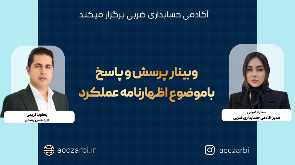 با توجه به پرسشهای فراوان مخاطبان درباره اظهارنامه عملکرد، این بار در یک وبینار رایگان همراه با جناب آقای کریمی و سرکار خانم ستاره ضربی، به تمامی سوالات شما به صورت مستقیم پاسخ داده خواهد شد.